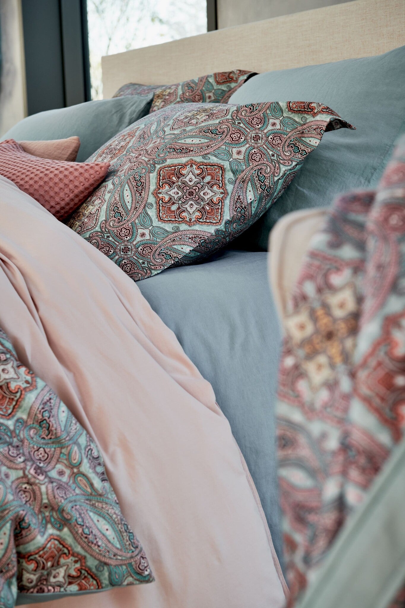Bettbedeckung Charm Pearl Blue 240x220 cm (Satin -Baumwolle)