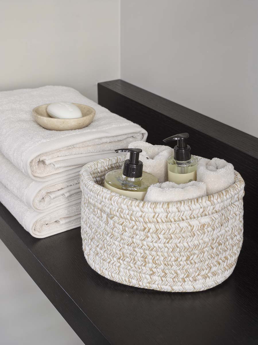 The RENA baskets are handy storage units and can be used anywhere in the house. Do you have small items in the bathroom, living room, wardrobe or bedroom? With these storage baskets you can easily organize everything! This beige basket is made of cotton with polyester.