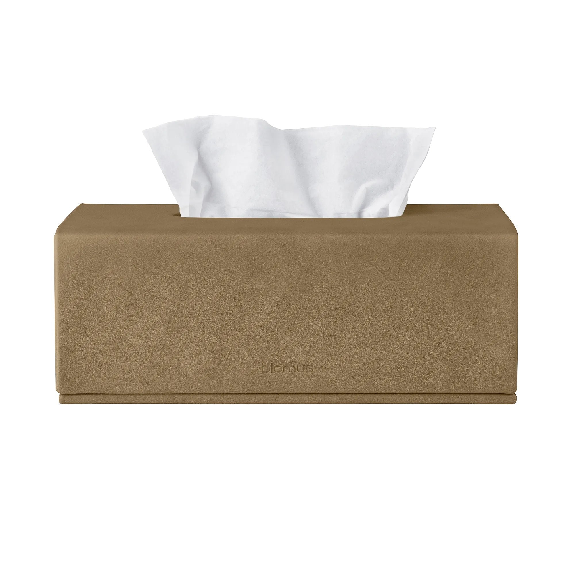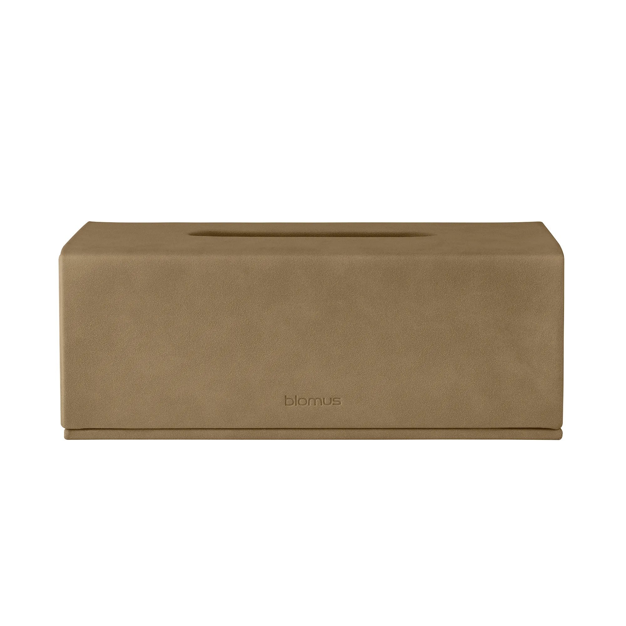 Bruine tissuebox van faux suede, gemaakt van zeer stevig karton dat voorzien is van een laag PU leer (vegan). Deze Blomus tissuehouder heeft een afmeting van 13x25 cm en is 9,5 cm hoog. De tissuebox is voorzien van een handige klep aan de onderzijde, waardoor je eenvoudig een standaard tissuebox kunt plaatsen. Sahla betekent 'simpel en discreet' in Samoaans, wat de uitstraling van deze tissuehouder in jouw badkamer goed omschrijft.