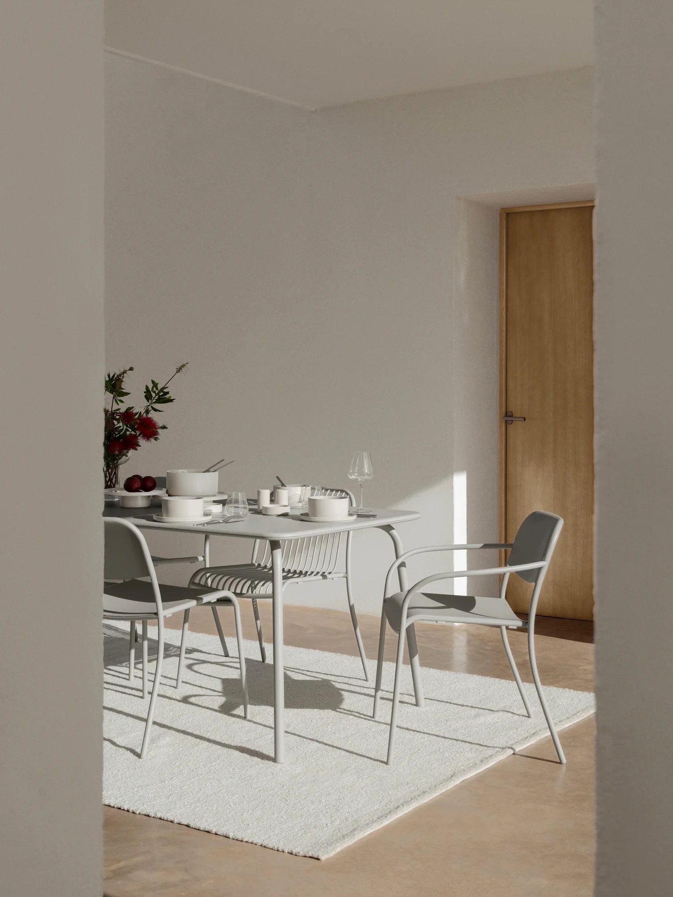 The Yua furniture is stackable and can therefore be stored easily and in a space-saving manner.
