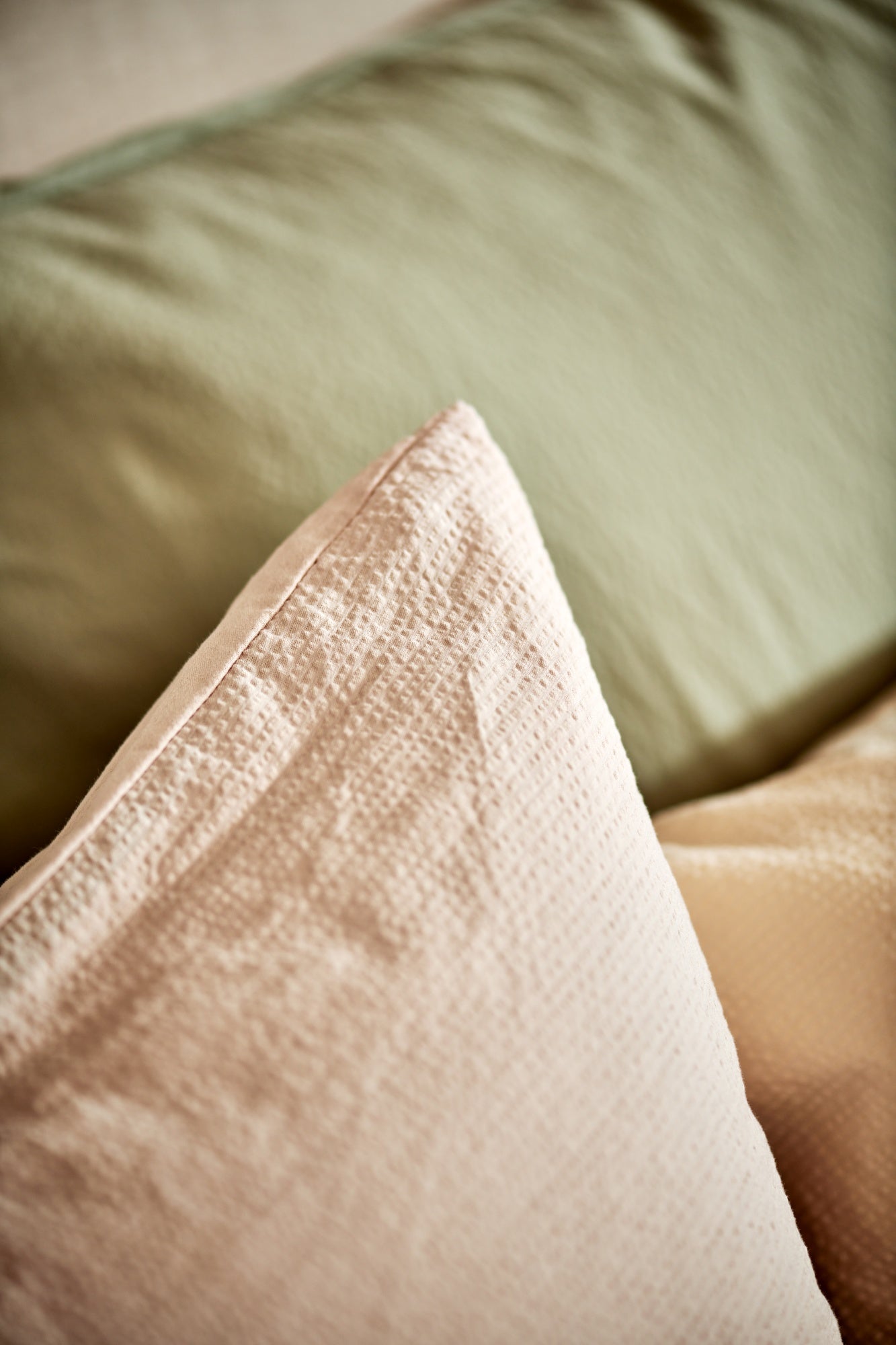 Wanneer katoenen stoffen met een seersucker weving worden gemaakt, krijg je een rimpelige of bobbelige structuur. Dit ontstaat doordat draden afwisselend strakker en losser worden geweven. Een seersucker weving geeft niet alleen een luxe uitstraling, maar zorgt ook voor een luchtigere variant van katoen doordat er in de extra ruimtes tussen de stof en de huid een betere luchtcirculatie ontstaat. Een seersucker dekbedovertrek hoef je niet te strijken omdat de kreuk juist kenmerkend is voor de stof.