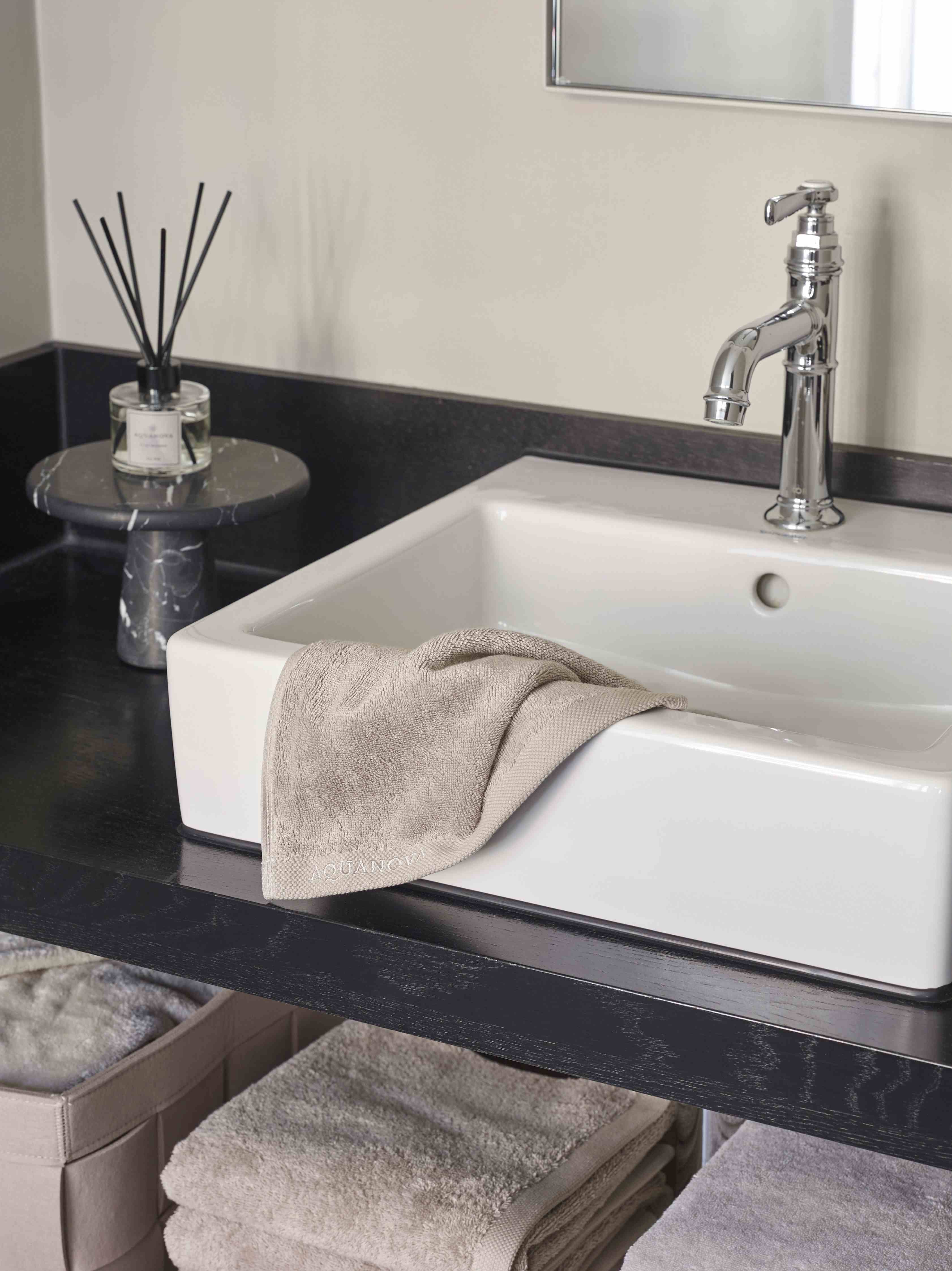 Il piedistallo della serie Nero di Aquanova è realizzato a mano e ha un aspetto lussuoso. Ciò è dovuto alla pietra naturale con elegante marmorizzazione.