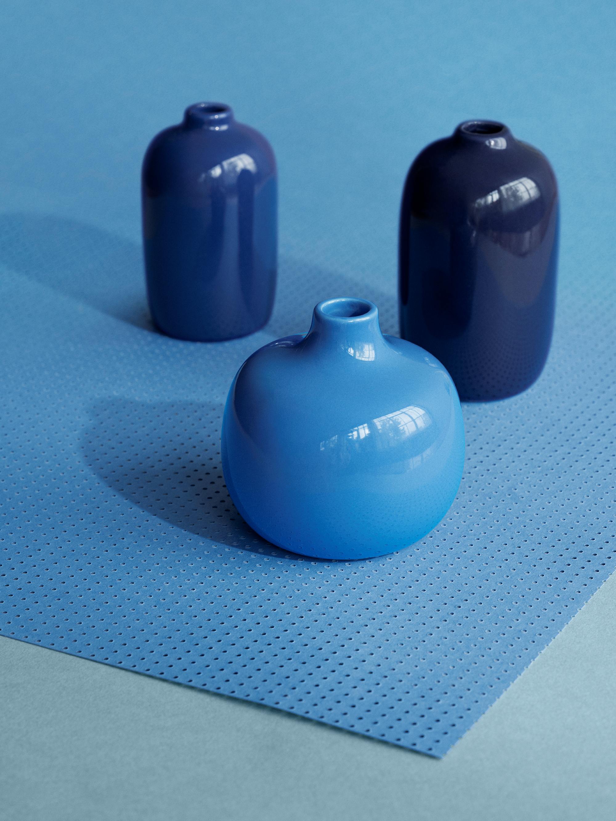 Set van 3 kleine vazen die perfect aansluiten bij de Japans geïnspireerde Ceola serie. De blauwe vaasjes zijn gemaakt van resistent geglazuurd keramiek met een glossy finish in elk hun eigen tint en afmetingen. Deze vazen set is perfect als subtiel kleuraccent in je interieur en om fijne bloemetjes te etalleren. Elke Blomus vaas is uniek door de lijnen, lichte kleurvariaties en kleine oneffenheden die door de manier van produceren ontstaan. Dit belicht juist het unieke karakter van natuurlijk materiaal.