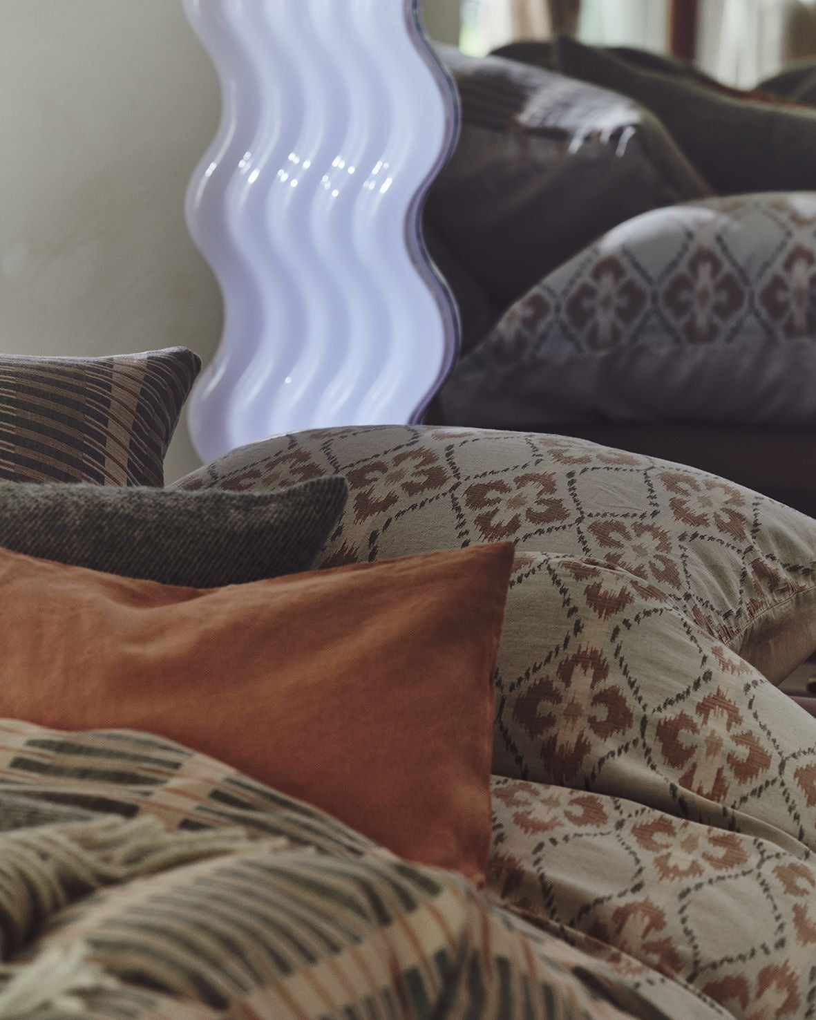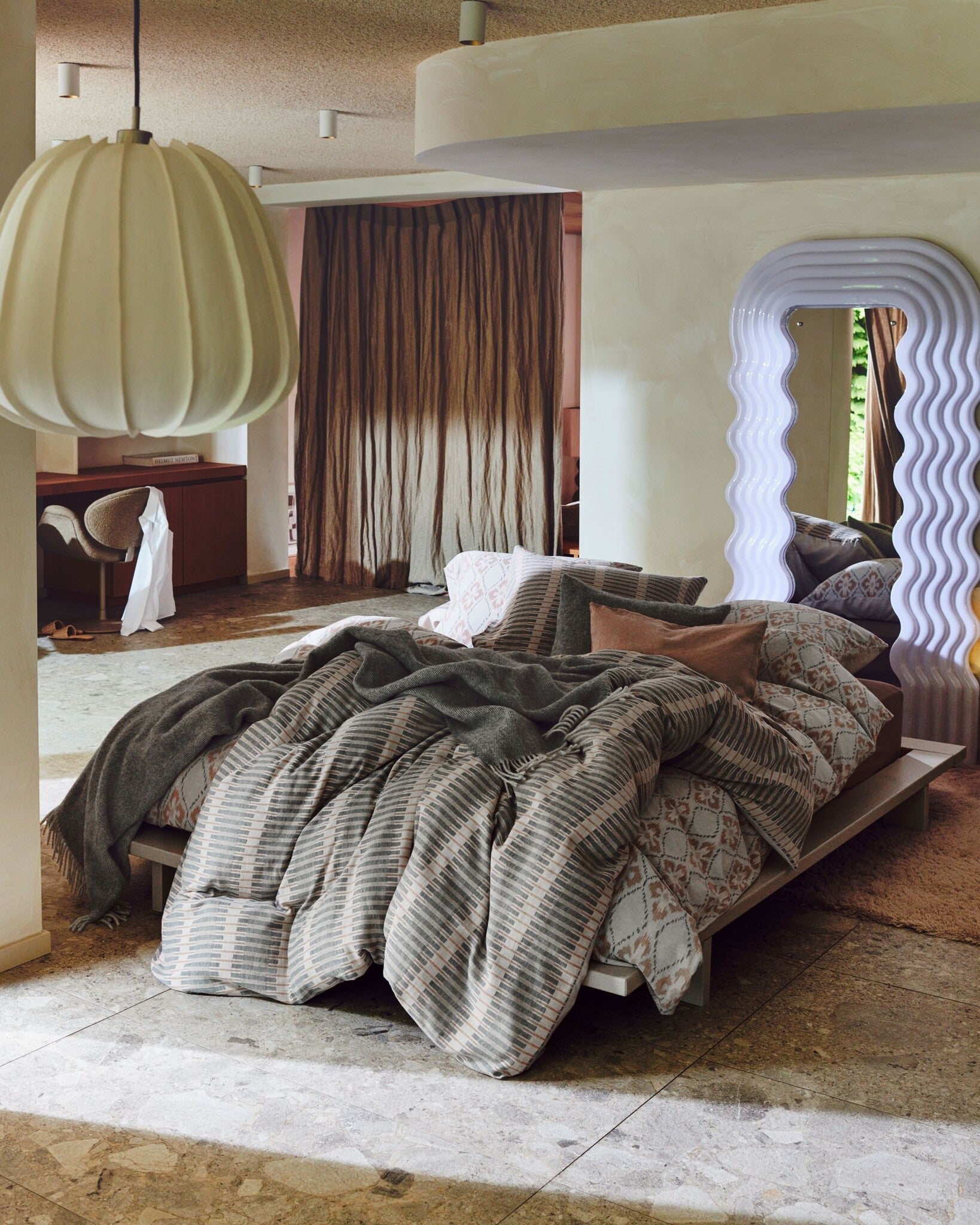 Ontdek dit prachtige dekbedovertrek in een jacquard geweven satijn. Het stof van het PURE 74 dekbedovertrek voelt zijdezacht en de etnische print aan de bovenzijde geeft een unieke, luxe uitstraling. De onderzijde van het dekbedovertrek is gemaakt van een uni gekleurde satijn, hiermee kun je gemakkelijk een kleuraccent aanbrengen.