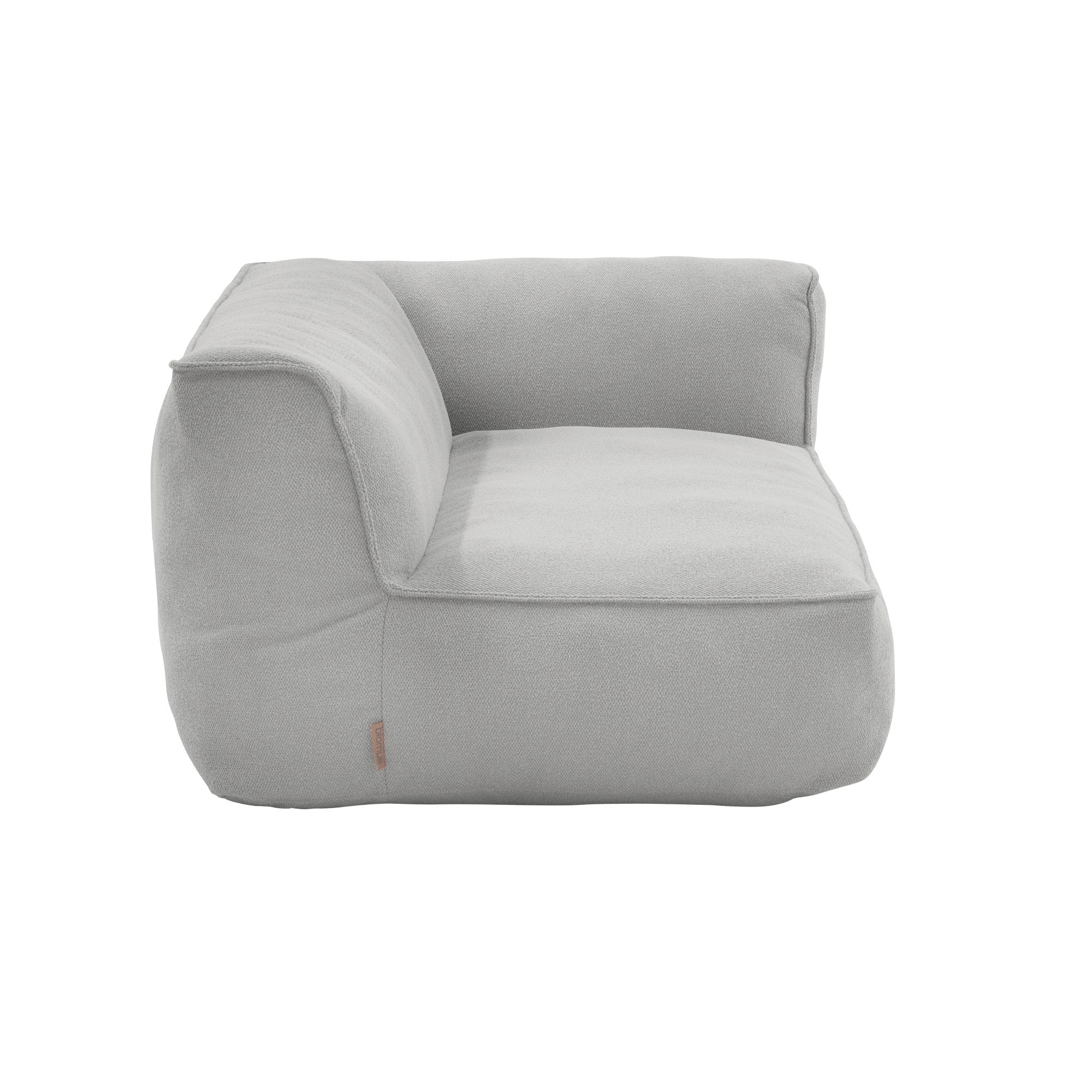 Lichtgrijs hoekelement uit de Grow outdoor serie van Blomus met een afmeting van 75x95 cm en een hoogte van 68 cm. De hoekmodule is op zichzelf een fijn loungemeubel en past perfect bij de andere Grow meubels. Deze zijn ontworpen voor buiten, maar hebben qua comfort vergelijkbare kwaliteiten met binnenmeubels. De polyester bouclé stof is onderhoudsvriendelijk en UV-bestendig. De PA coating maakt de buitenzijde waterbestendig en de binnenzijde is waterdicht door een TPU coating.