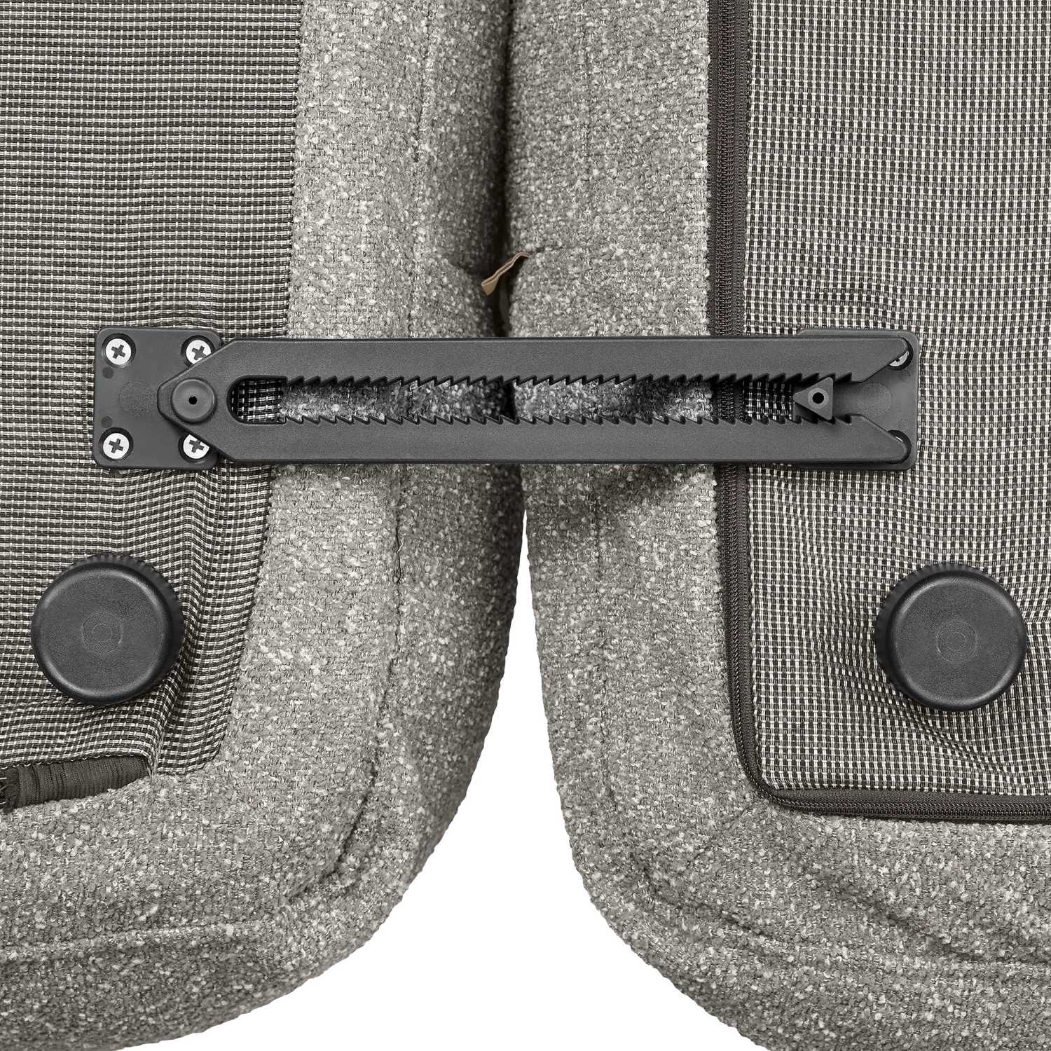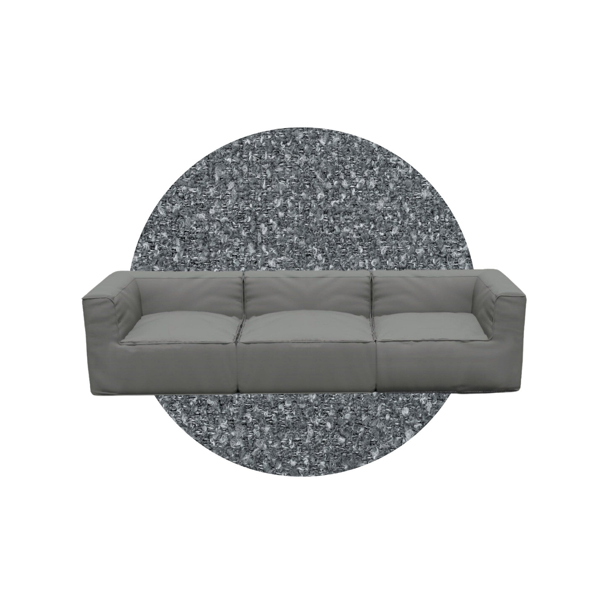 Grijze loungebank uit de Grow outdoor serie van Blomus met een afmeting van 95x265 cm en een hoogte van 68 cm. Deze loungebank bestaat uit drie losse modules die middels de meegeleverde bodemplaten en connectors gekoppeld kunnen worden. De Grow meubels zijn ontworpen voor buiten, maar hebben qua comfort vergelijkbare kwaliteiten met binnenmeubels. De polyester bouclé stof is onderhoudsvriendelijk en UV-bestendig. De PA coating maakt de buitenzijde waterbestendig en de binnenzijde is waterdicht door een TPU coating. Bij de bodemplaten zitten meubelpoten van 2 cm hoog.