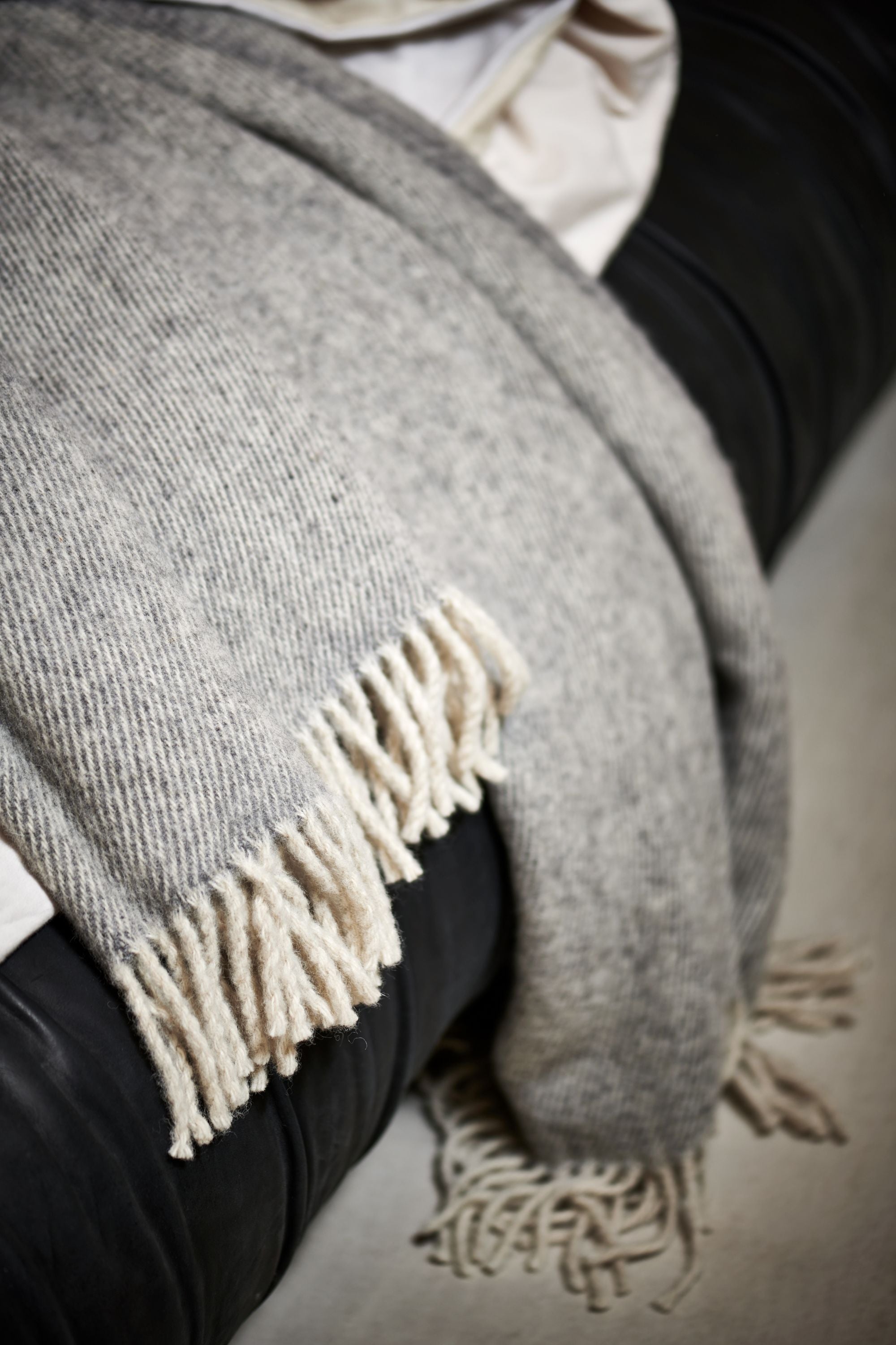 2-persoons wollen plaid (320 gram/m²) met een afmeting van 160x260 cm in een gemêleerde, lichtgrijze kleur. Lekker voor op de bank of mooi als sprei op bed.
