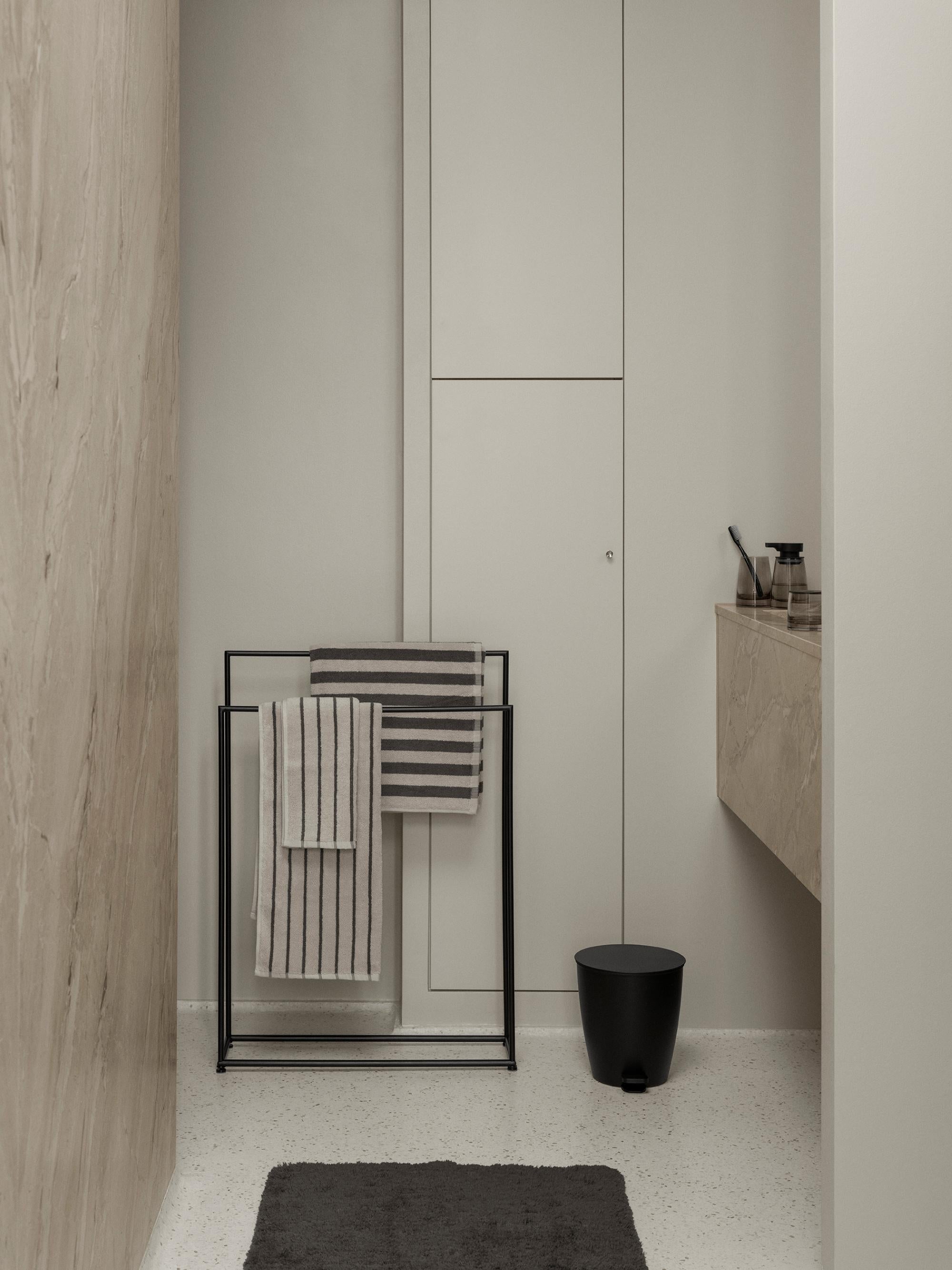 Het Modo handdoekrek heeft een strakke look door de smalle vormen en het zwart staal. Het staande handdoekrek van Blomus heeft twee stangen op verschillende hoogtes en is 86 cm hoog, 60 cm breed en 18,5 cm diep. Door de poedercoating heeft het dubbele rek een matte look.