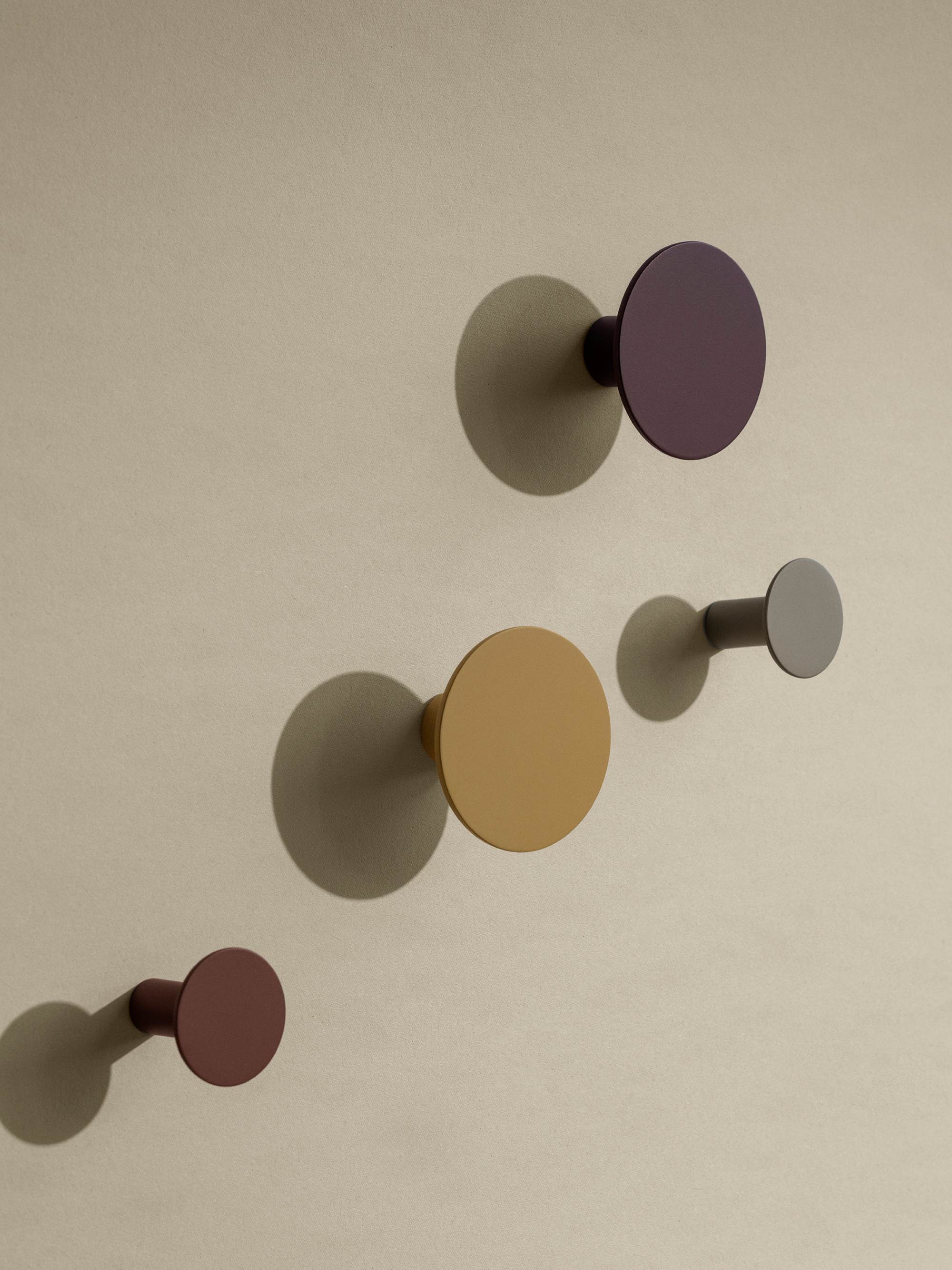 De Ponto set van Blomus bestaat uit vier ronde wandhaken. 2 grote en 2 kleine voor een speels effect. De haken zijn gemaakt van polystone in vier verschillende tinten: warm bruin, terracotta, beige en geel. Ze zorgen voor een moderne toevoeging en subtiele, warme kleuraccenten in de hal, garderobe, kledingkast of badkamer.