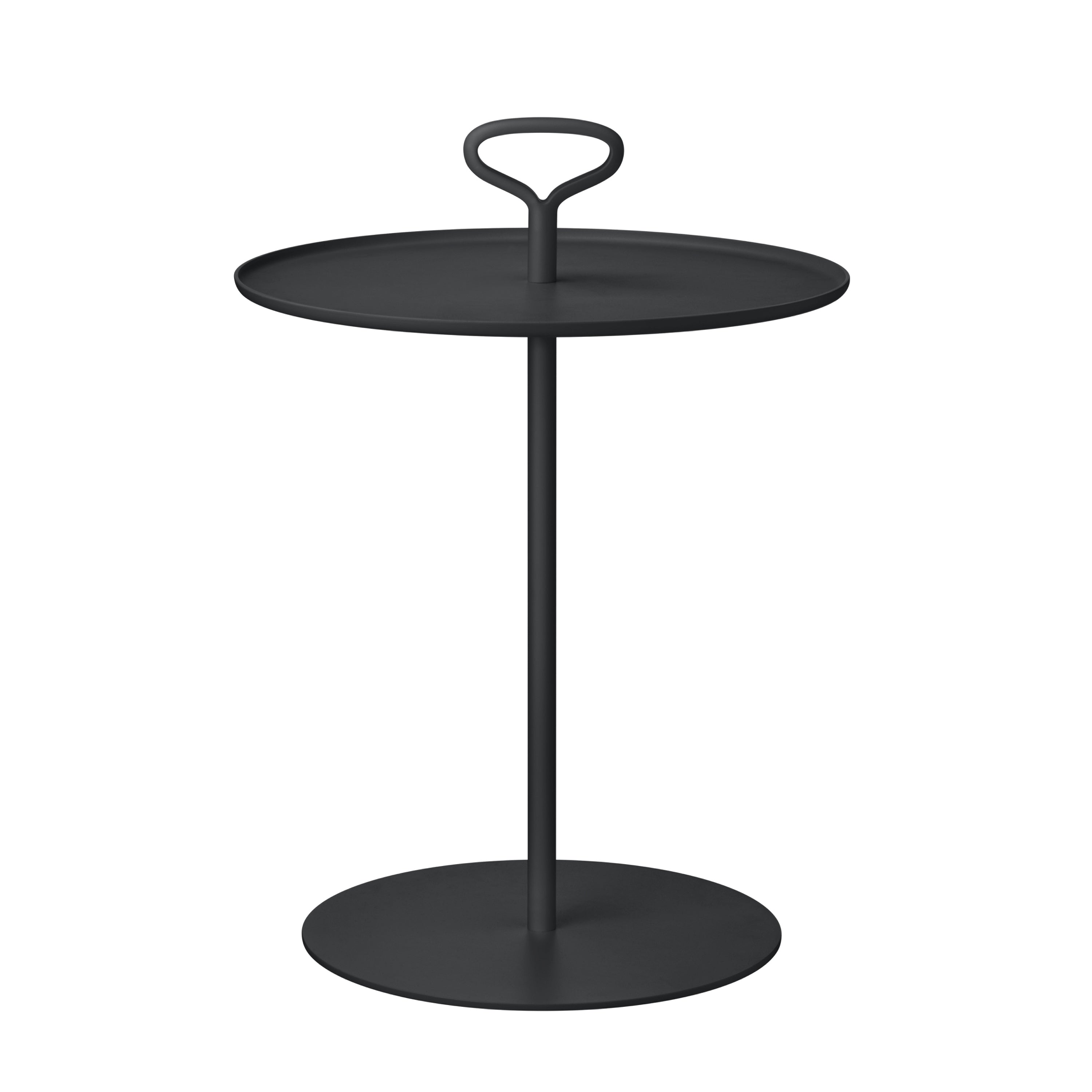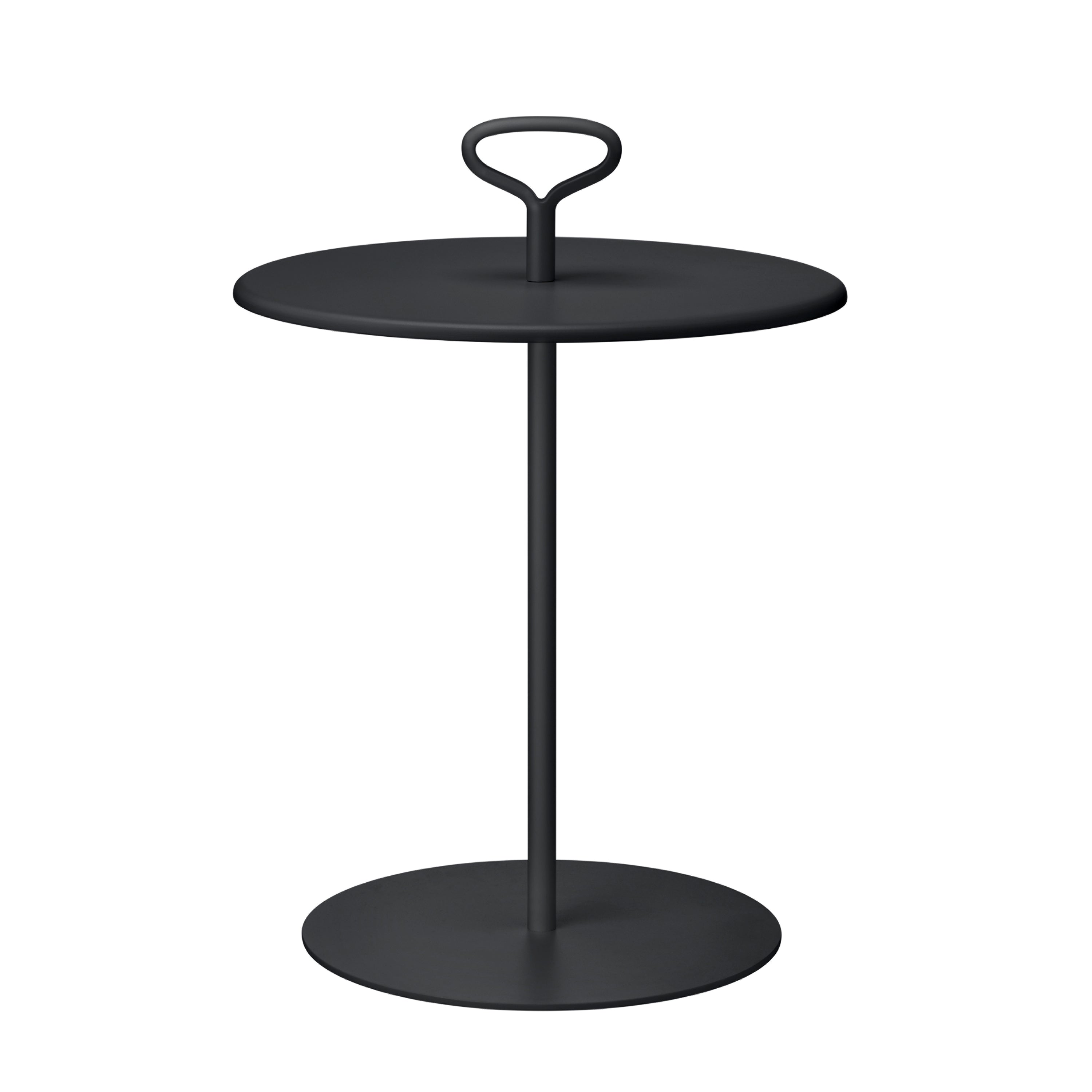 Zwarte ronde bijzettafel voor buiten met een diameter van 42 cm. Het elegante handvat geeft het Porter tafeltje z'n kenmerkende look met typische Blomus uitstraling én maakt verplaatsen gemakkelijk. Ook schroef je hier het tafelblad mee vast dat tweezijdig te